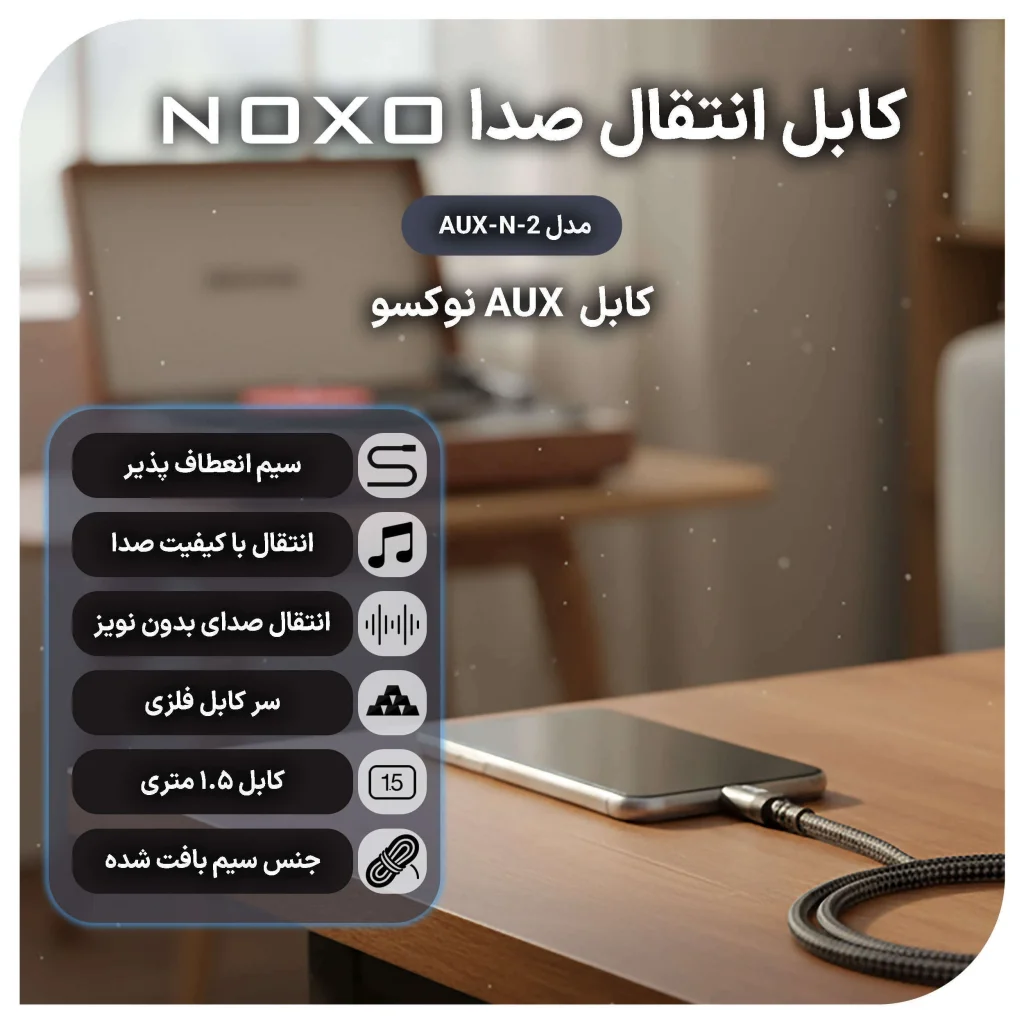 کابل AUX نوکسو لایتنینگ به جک 3.5 میلی متری مدل AUX-N-2 | طول 1.5 متر