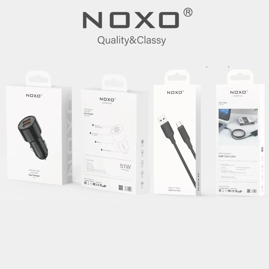 شارژر فندکی 51 وات دو پورت نوکسو مدل CCN-1 به همراه کابل تبدیل USB-A به Type-C نوکسو مدل CN-1 طول 1متر شارژ سریع 2.4 آمپر
