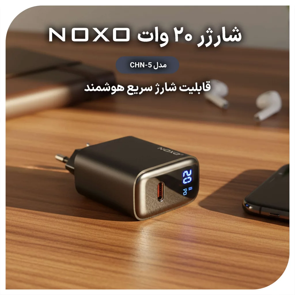 شارژر دیواری نوکسو مدل CHN-5 | 20 وات، فناوری PD و نمایشگر دیجیتال – کوچک، سریع، هوشمند