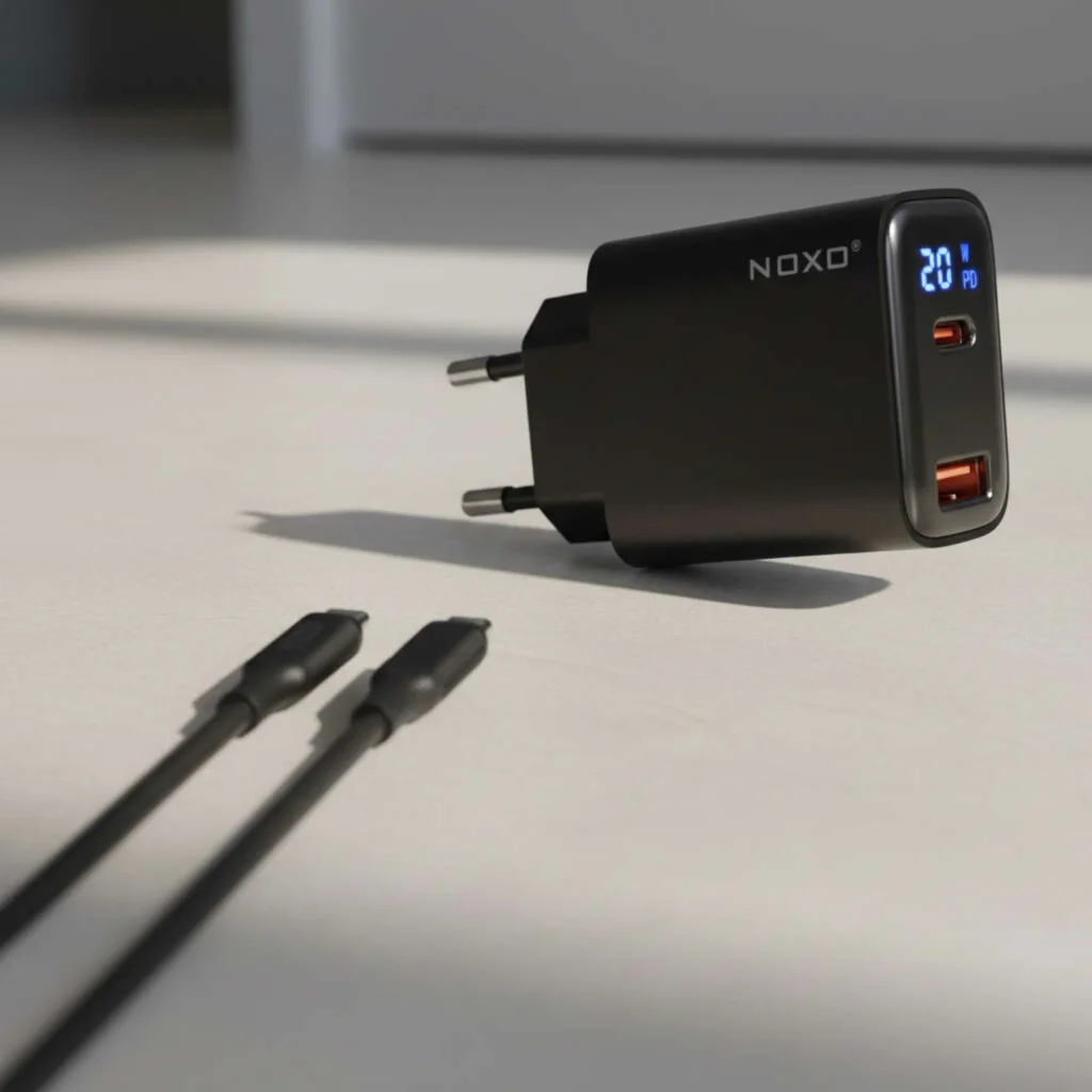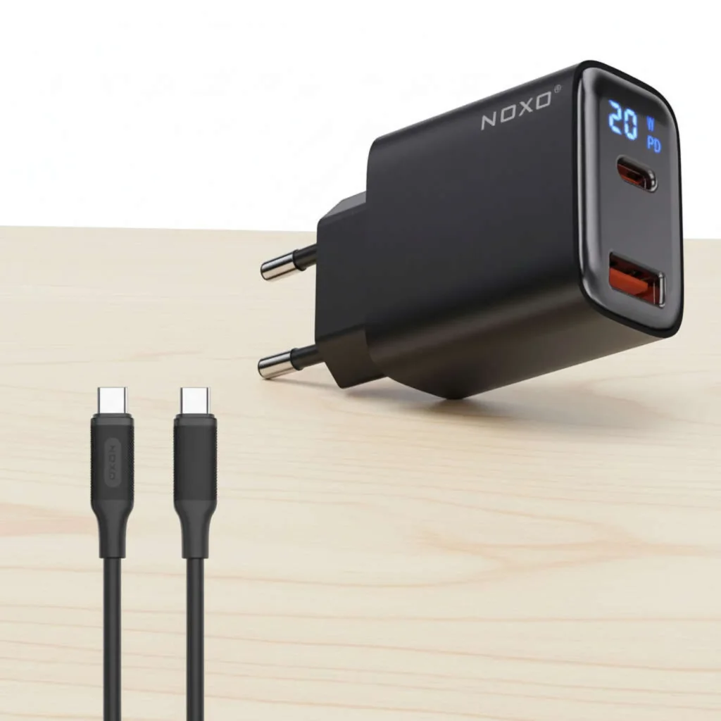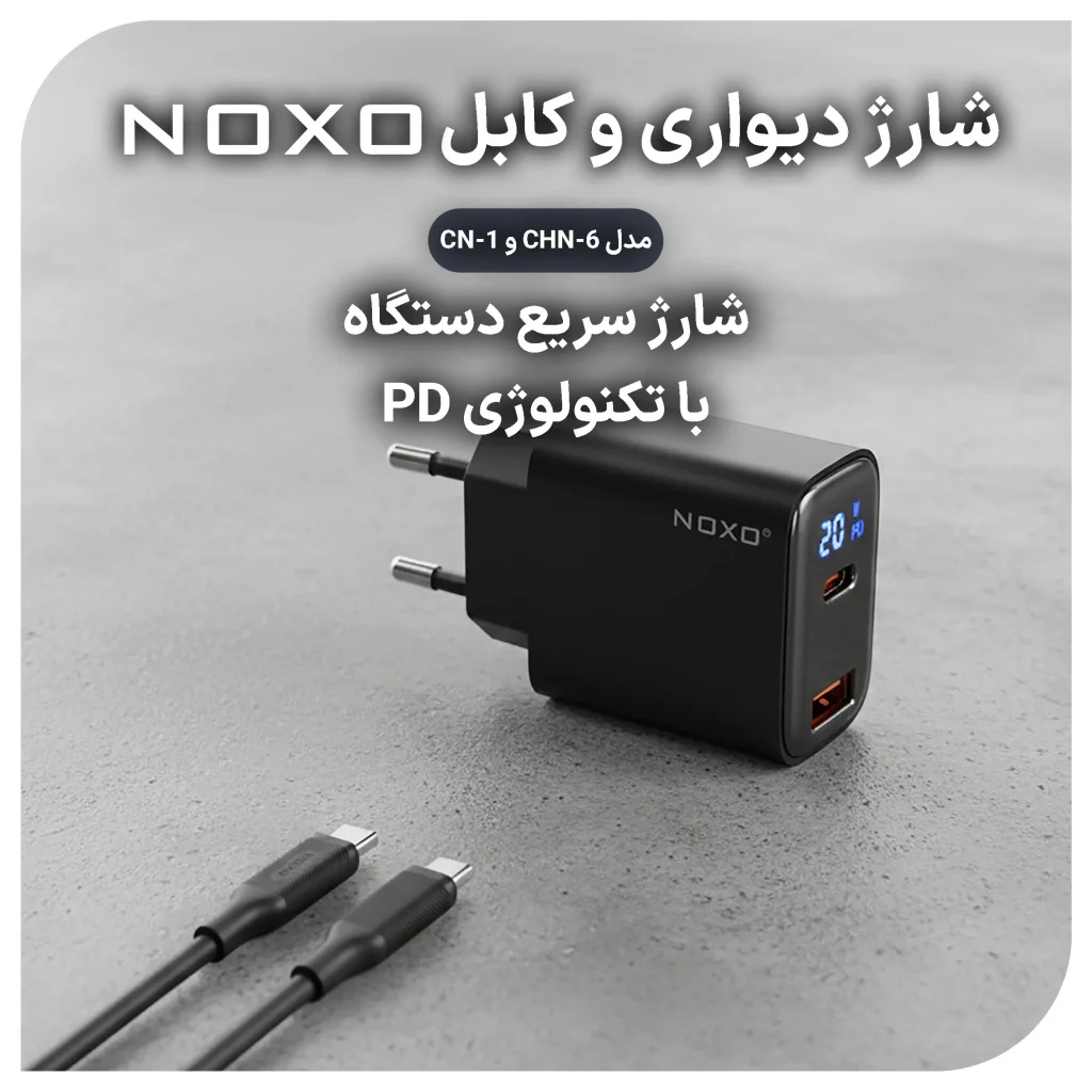 شارژر دیواری 20 وات نوکسو CHN‑6 با دو پورت USB‑A و USB‑C