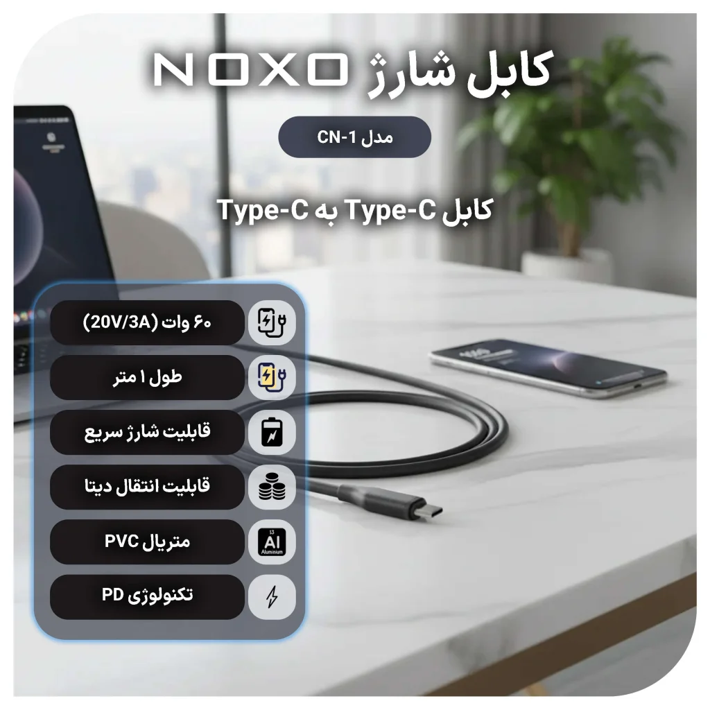 شارژر دیواری 20 وات دو پورت نوکسو مدل CHN-6 به همراه کابل تبدیل 60 وات Type-C به Type-C نوکسو مدل CN-1 طول 1متر