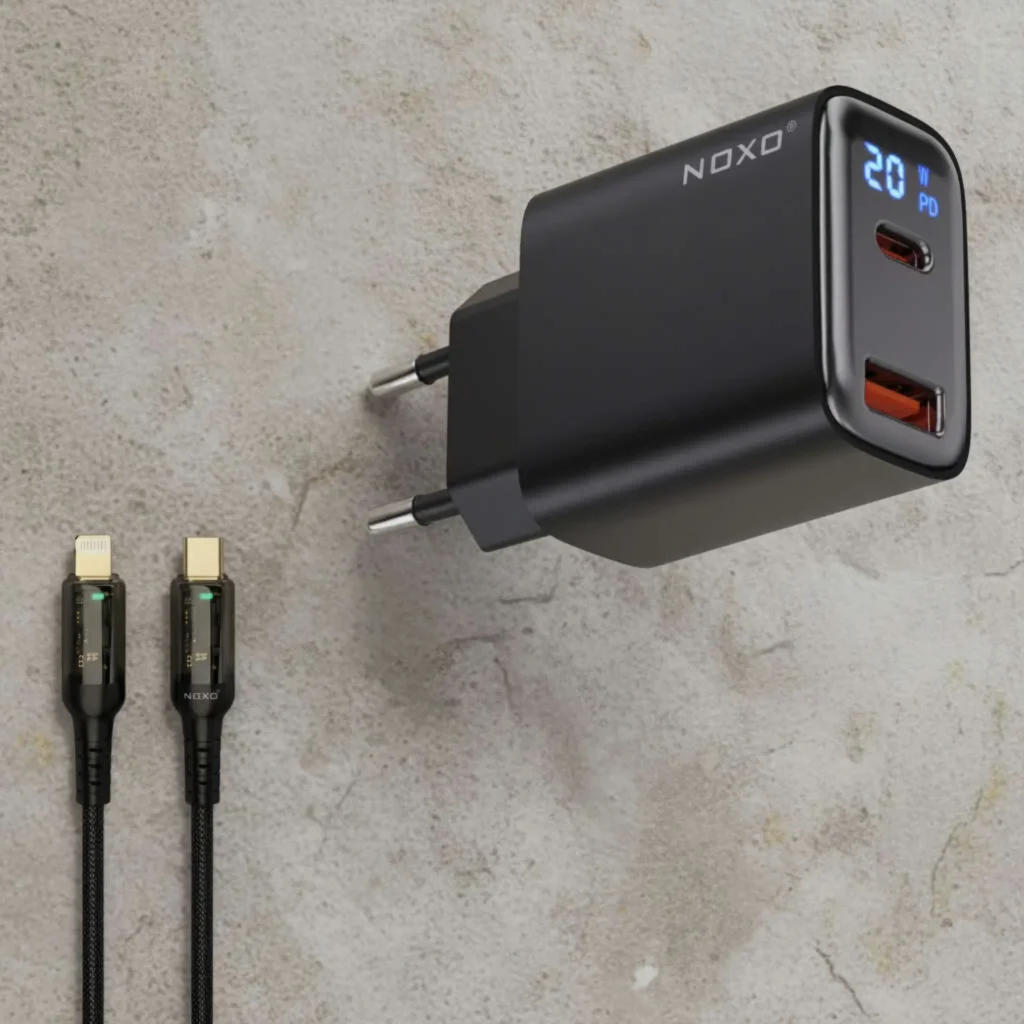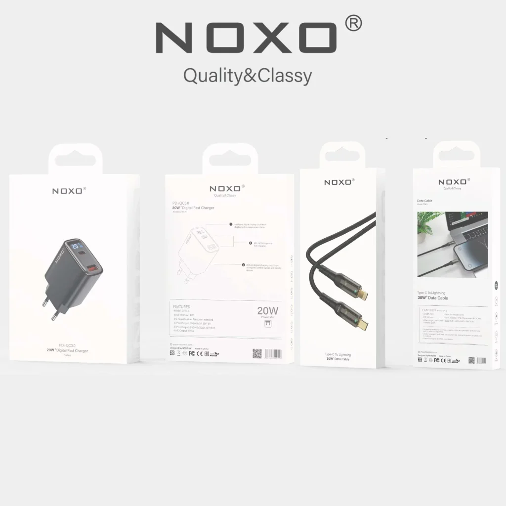 شارژر دیواری 20 وات دو پورت نوکسو مدل CHN-6 به همراه کابل تبدیل 30 وات Type-C به Lightning نوکسو مدل CN-3 طول 1.2 متر