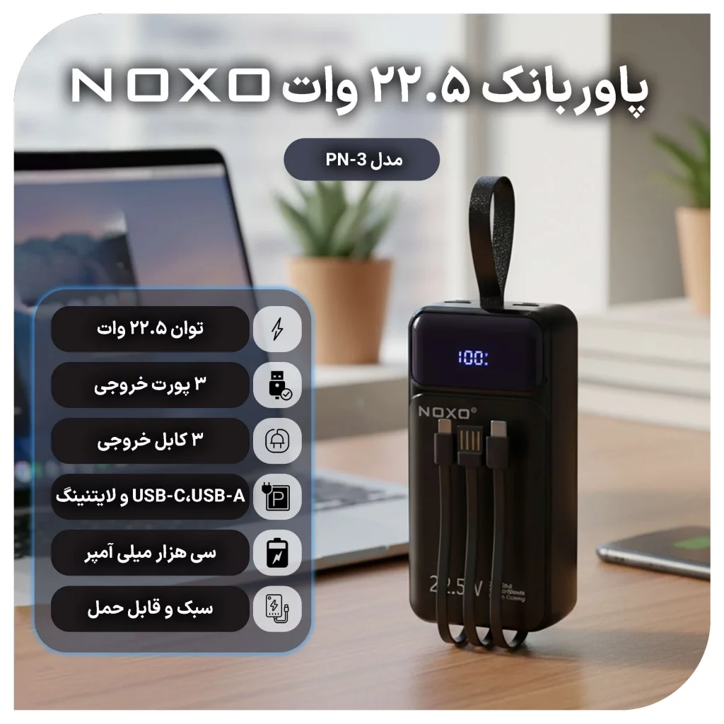 پاوربانک نوکسو PN-3 | 30000mAh با شارژ سریع 22.5W