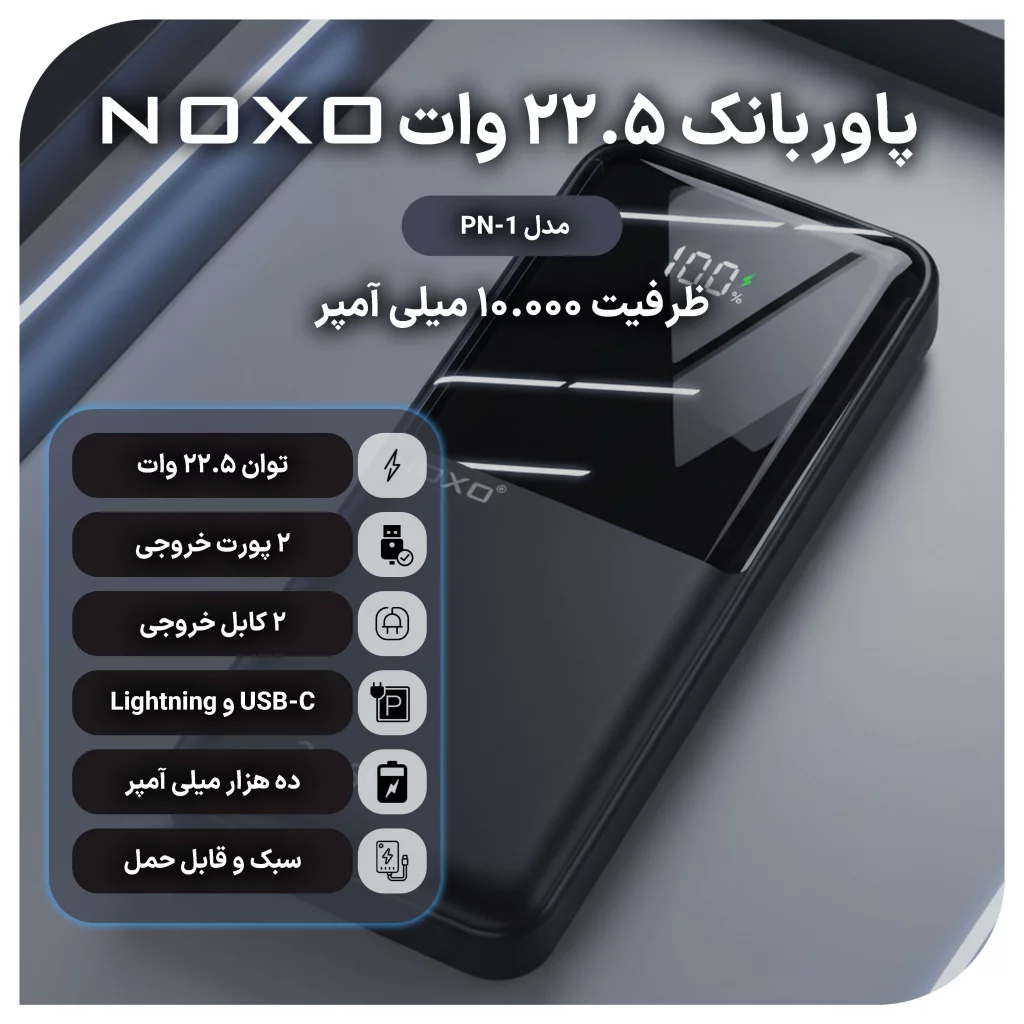 پاوربانک نوکسو با ظرفیت 10000 میلیآمپر ساعت توان 22.5 وات مدل PN-1 | شارژ سریع و کارایی بالا