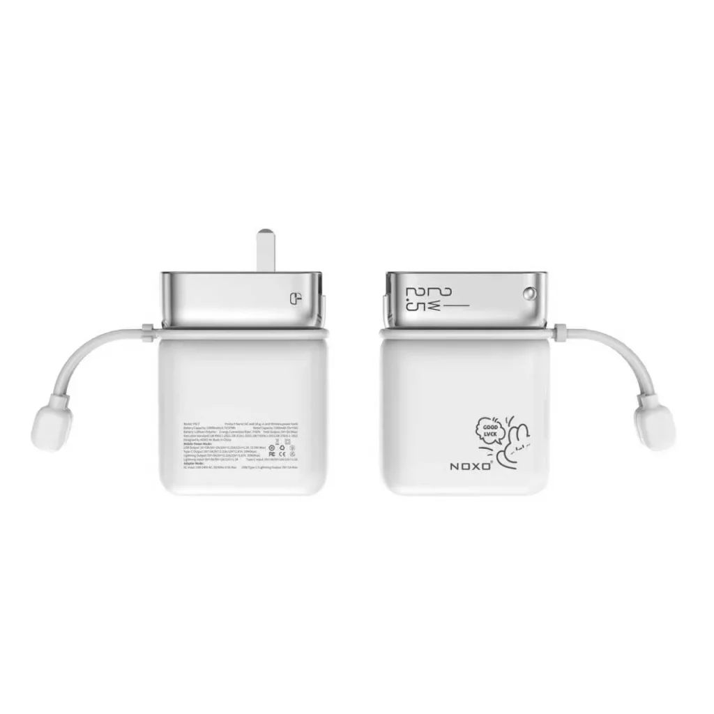 پاوربانک نوکسو مدل PN‑7 ظرفیت 10000 میلیآمپر با دوشاخه برق داخلی