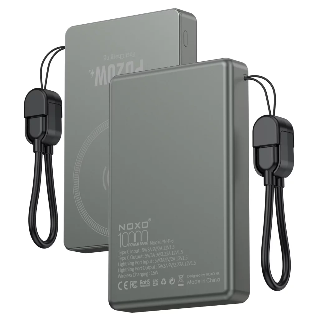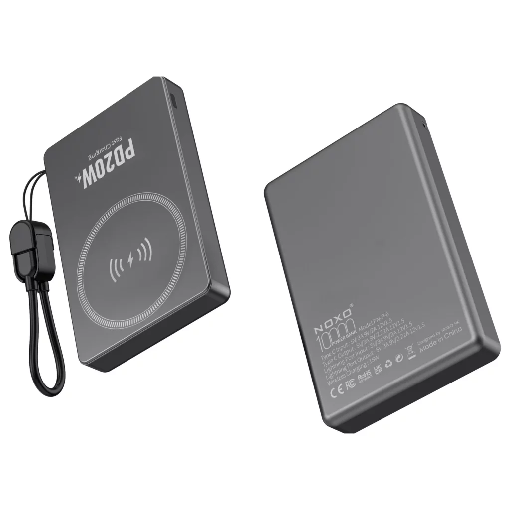 پاوربانک PN-P-6 نوکسو یک گزینه همهکاره برای شارژ روزانه است که هم از شارژ سیمی سریع تا ۲۰ وات پشتیبانی میکند و هم امکان شارژ بیسیم تا ۱۵ وات را دارد. این ترکیب باعث میشود بتوانید گوشیهای آیفون، اندروید و دستگاههای سازگار با شارژ بیسیم Qi را بدون نیاز به کابل شارژ کنید.
